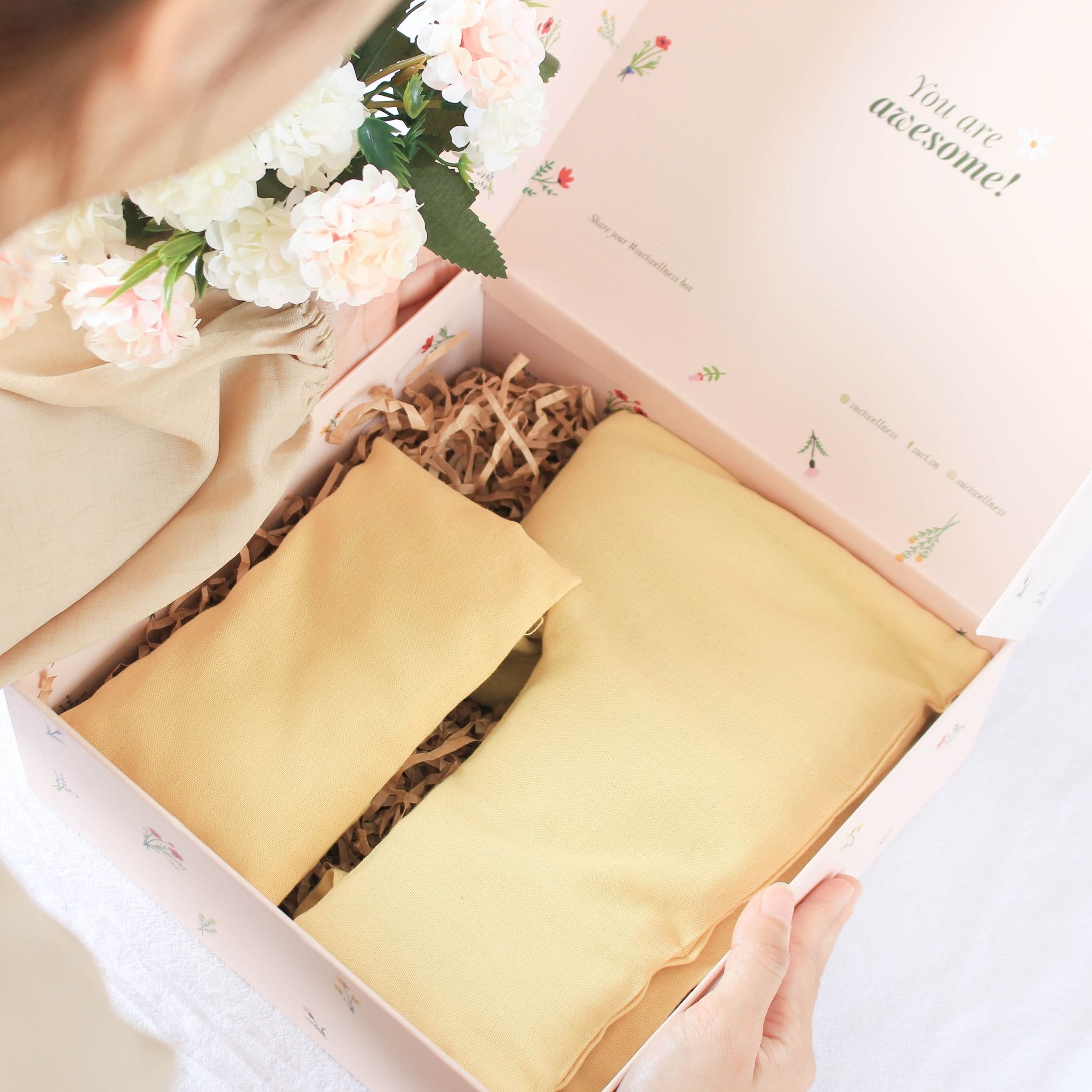 Combo Gối chườm cổ vai gáy + Túi Chườm Mix Hoa Lá Thảo Mộc 18*12cm (Màu vàng)